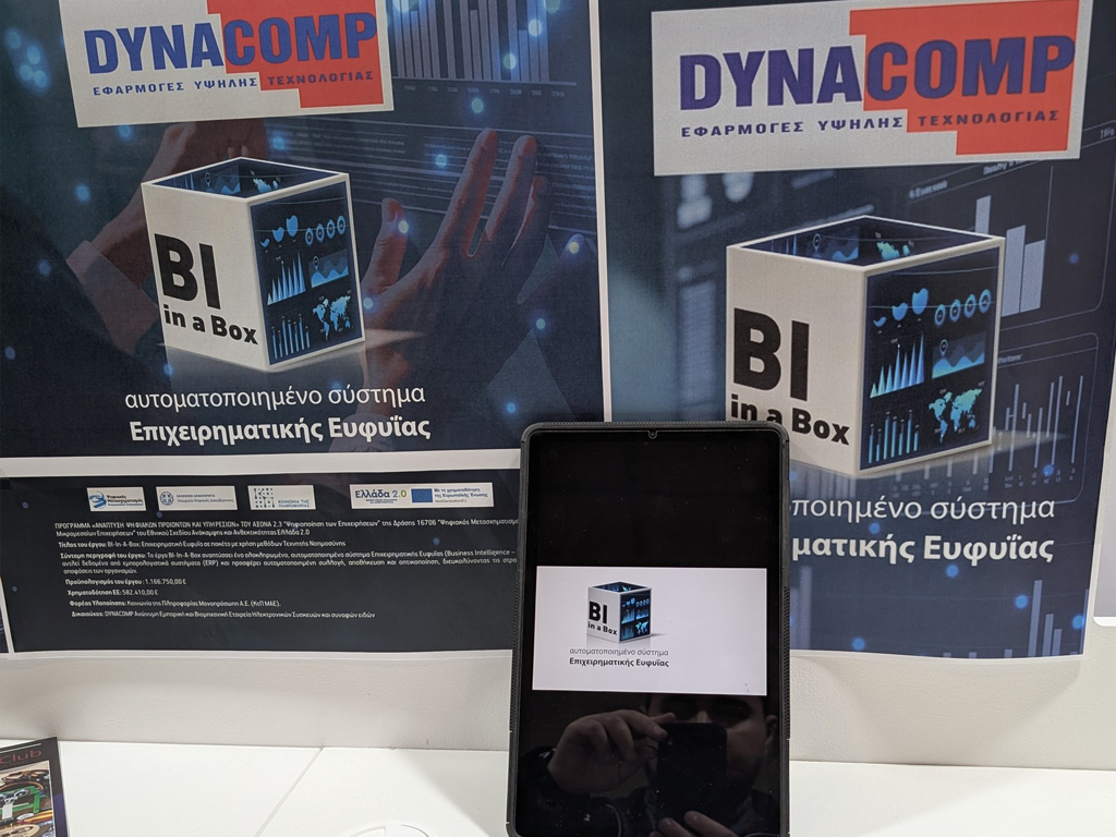 Κατά τη διάρκεια της διοργάνωσης, η ομάδα του Bi in a Box είχε την ευκαιρία να παρουσιάσει τις λύσεις και τις τεχνολογίες της Dynacomp A.E.B.E., αναδεικνύοντας τον τρόπο με τον οποίο η τεχνητή νοημοσύνη και τα συστήματα επιχειρηματικής ευφυΐας συμβάλλουν στον εκσυγχρονισμό των επιχειρήσεων και στον ψηφιακό μετασχηματισμό της ελληνικής αγοράς.